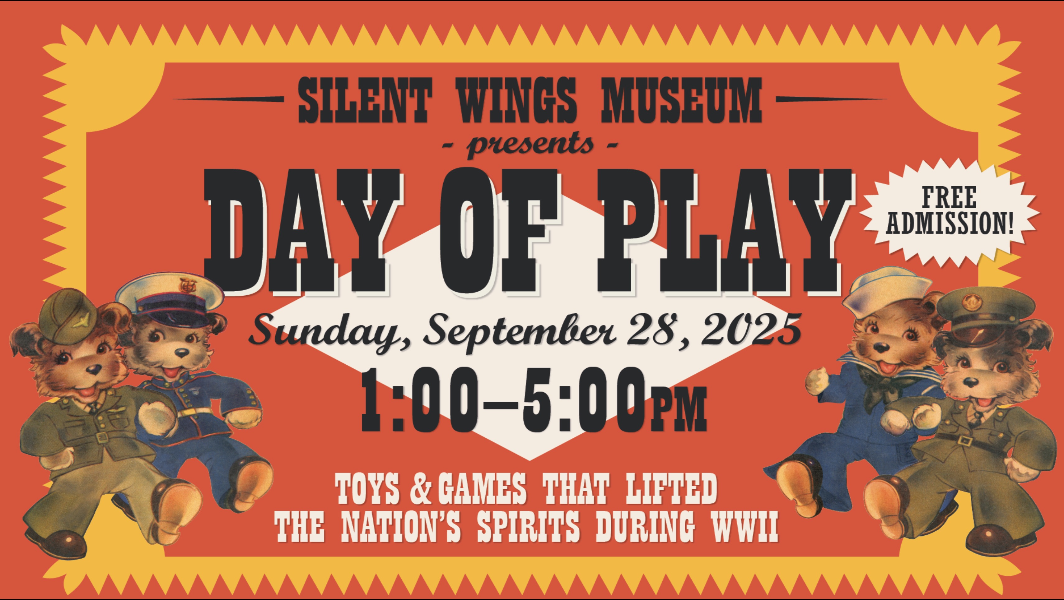 The Silent Wings Museum is hosting a FREE admission “Day of Play” in conjunction with their exhibit In the Game Together: Toys for a Nation at War on Sunday, September 28, 2025, from 1-5 p.m.