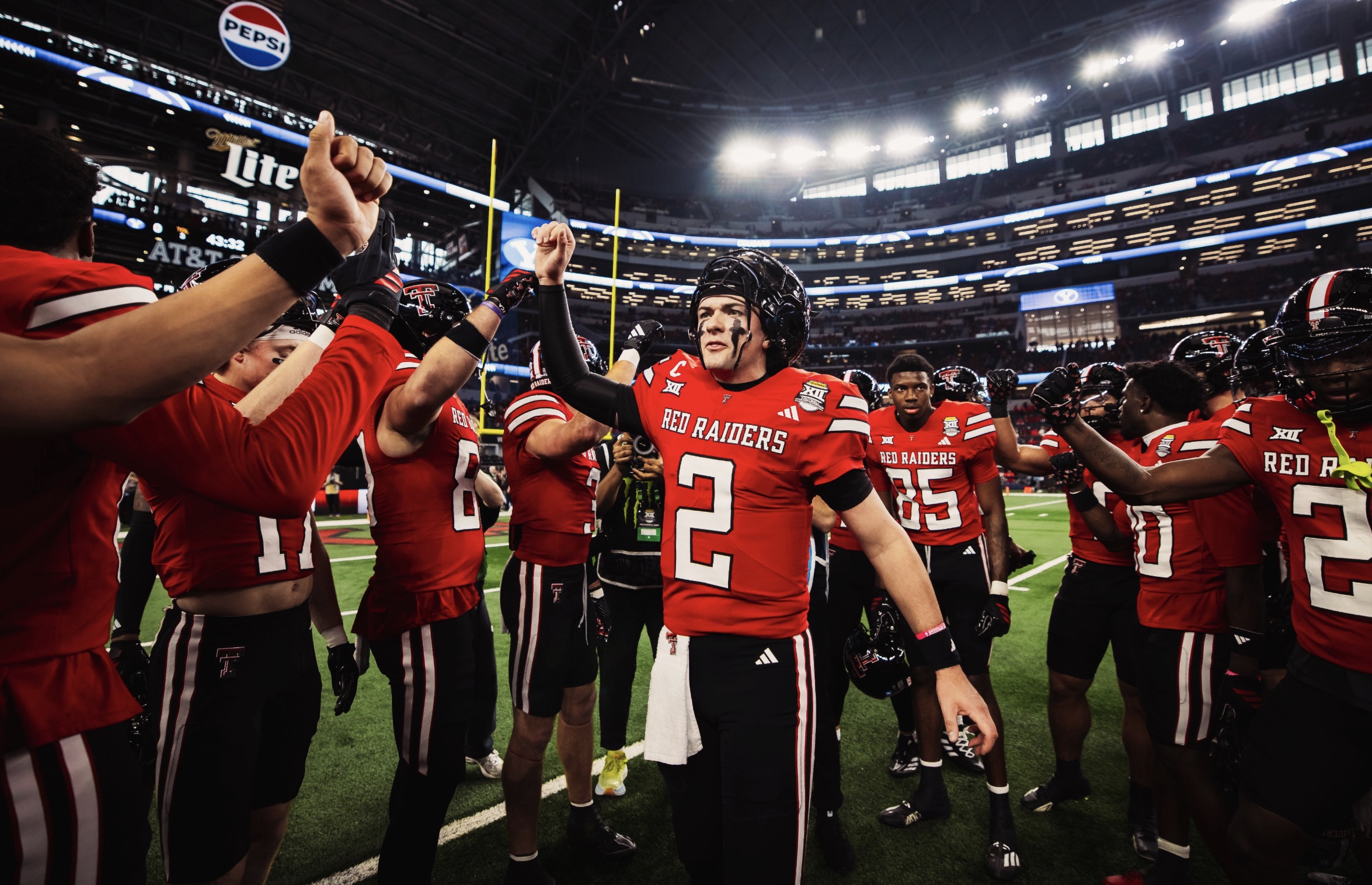 ARLINGTON, TX — The No. 4 Texas Tech Red Raiders squared off with No. 11 BYU at AT&T Stadium on Saturday, Dec. 6, to determine who would take home the Big 12 Title. Texas Tech built a six-point lead in the first half before exploding in the final two quarters. The Red Raiders' defense dominated BYU in the second half, forcing four takeaways, and the Red Raiders claimed their first Big 12 Title in Program history.